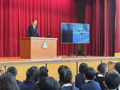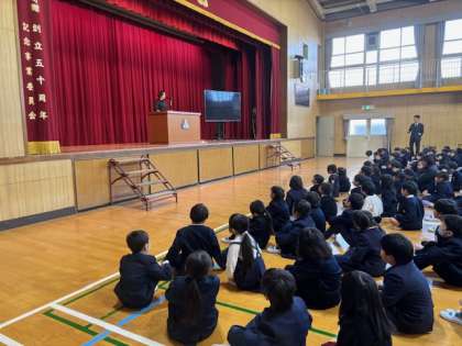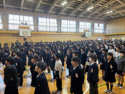 3学期の始業式の様子です。校長からは、箱根駅伝における青山学院大の「負けてたまるか大作戦」をもとにした話を伝えました。健康面、生活指導面について担当の先生からの3学期の過ごし方の話も、みんなしっかりと話を聞くことができました。今日、聞いた話を心にとめて3学期も元気に学校生活を送ってもらいたいと思います。