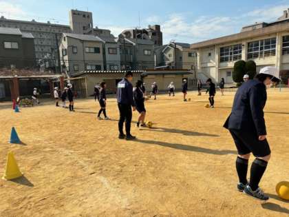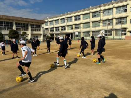 鶴見区役所の「夢・未来・創造事業」の一環でリーフラススポーツスクールの方に来校いただき、サッカーの体験授業を行ってもらいました。参加した6年生は楽しく身体を動かすことができました。