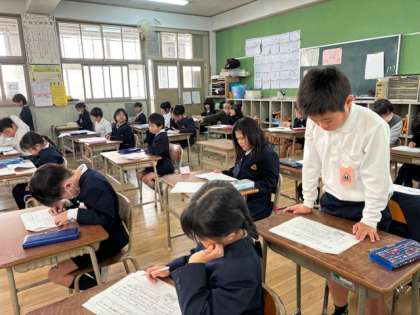 2年生の防災学習では、区役所が用意してくれた「今津小学校防災クイズ」に取り組みました。答えの説明にあたっては、地域の方からの体験談も聞くこともでき、子どもたちにはしっかりと地震の際の心構えがそなわったように思います。