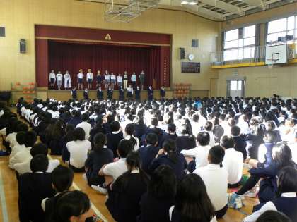 全校に歯みがきの大切さを呼びかけました。