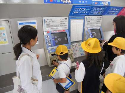 一人ずつ自分の財布に往復のお金をいれて自動販売機で切符を買いました。一人ずつ改札機を通ります。切符を初めて一人で買って電車に乗ったという児童にとってはよい経験でした。徳庵駅、放出駅の駅員さんありがとうございました。また、駅での一般のお客様、ご協力ありがとうございました。。