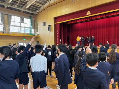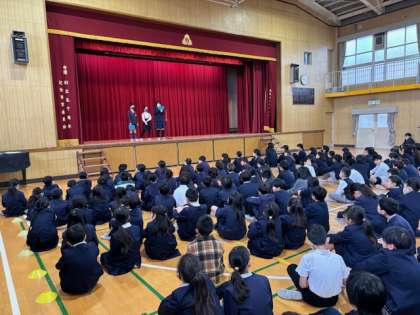 本日の児童集会では「声あてゲーム」を行いました。さらにキックベースボールの表彰、健康委員会、図書委員会、安全委員会、美化委員会からの報告・説明が続きました。児童の自立を促す活動機会として、集会が位置づけられるようこれからも取り組んでまいります。