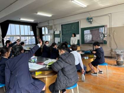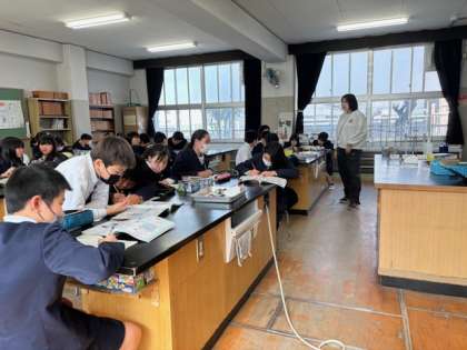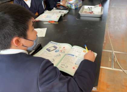 理科室で電流計を使いました。電流計の読み方をみんなで確認します。積極的に手を挙げて答えていました。