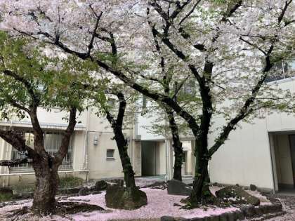 昨日の雨で、桜の花びらがかなり散ってしまいました。しかしながら、それが雪景色に咲く桜の木のように見え、とても不思議です。