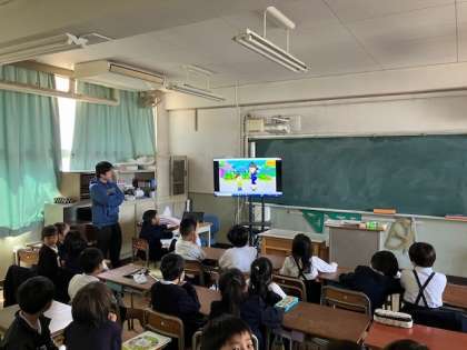 今週は「交通安全週間」です。3年生の教室に入ってみると、交通安全について動画やスライドを視聴し学習していました。