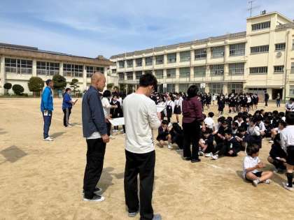 2時間目に火災を想定した避難訓練を実施しました。みんな落ち着いて迅速に行動することができました。災害に備え、子どもたちが自分自身でしっかりと命を守ることができるようご家庭でも避難方法などについてお話ください。