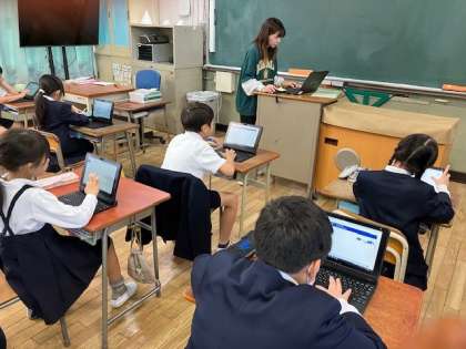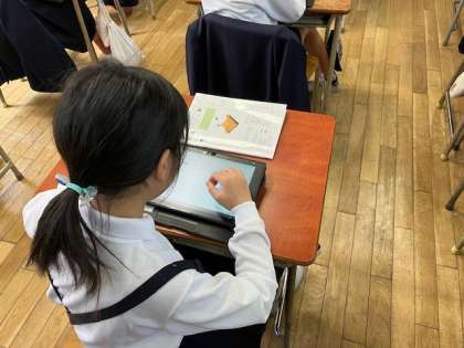 3年生の教室です。先生に指示に従いながら、タブレット端末の学習を進めています。今日はデジタルドリルなどの学習に取り組みました。