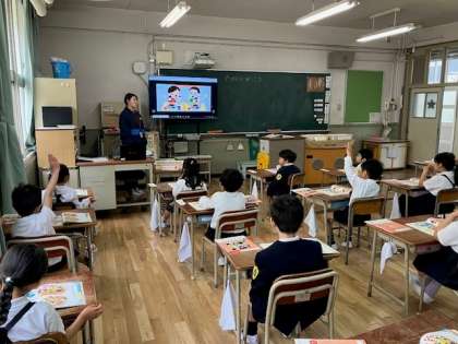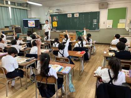昨日、学校たんけんを終えた1年生。今日は道徳の時間に学校のいろんな活動について、先生と一緒に確認しました。