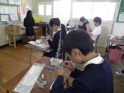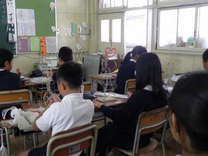 6年生は、針金を使って「わたしのドリーム☆タワー」をつくっています。