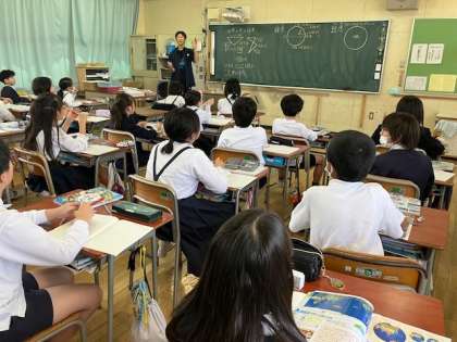 1組です。日本は地球のどの位置にあるのか。「緯度」「経度」といった言葉を楽しく学びながら学習しました。