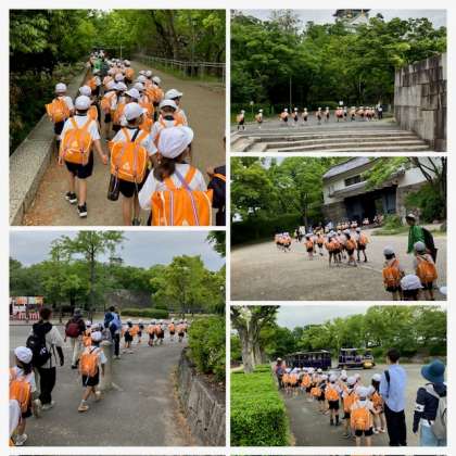 風が強く、少し肌寒いなか、みんなで元気に天守閣を目指しました。