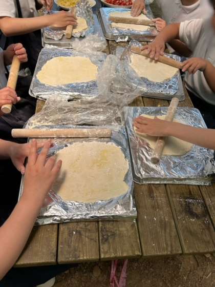 生地ができたら、具材を切って、生地をのばしたり、形を整えたりします!