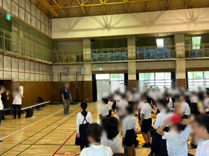体育館に集まり、施設の方に退所の挨拶をしました。