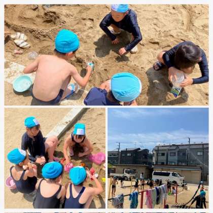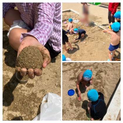 その後は運動場の砂場で泥んこ遊びを楽しみました。