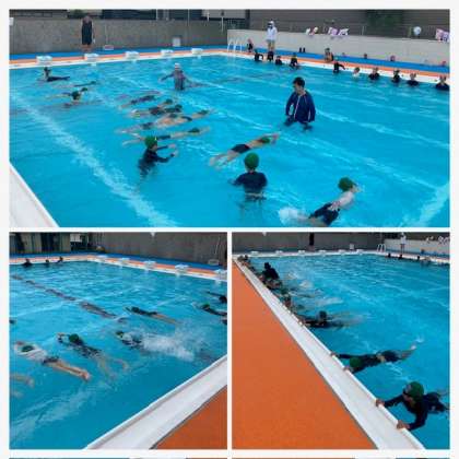 雨間をぬって、2年生がプール水泳を行いました。