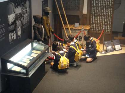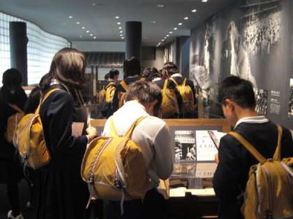 戦争がおこった背景や戦中・戦後の人々の暮らしについて展示物や映像を通して学びます。子どもたちはワークシートにそって考えや感じたことをまとめていました。平和の大切さについて考えることにつながったと思います。
