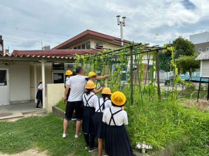 タブレット端末を使って写真をとり、観察シートに記録します。
