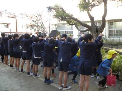6年4組の児童は榎本幼稚園の園児と交流会をしました。