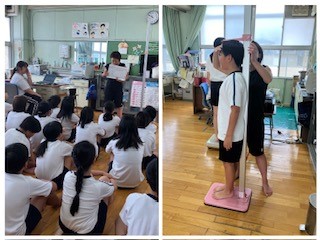 保健室の先生から体についての話を聞いた後、測定をしました。