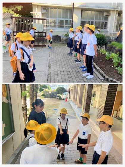 あいさつ活動後は、担当の子どもたちが毎日振り返りを行い次回に向けての確認をしています。