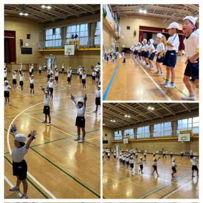 本日は雨のため、講堂での運動会練習です。