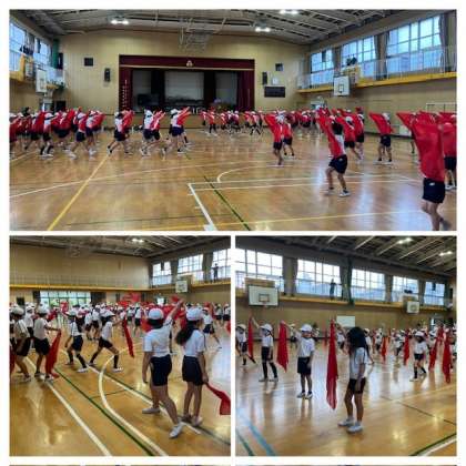 4年生の団体演技の練習です。心をひとつにして演技をすることは難しいことです。しかし、4年生のようにみんなでしっかりと声を出すことで心をひとつにすることができます。当日も頑張れ(^^♪