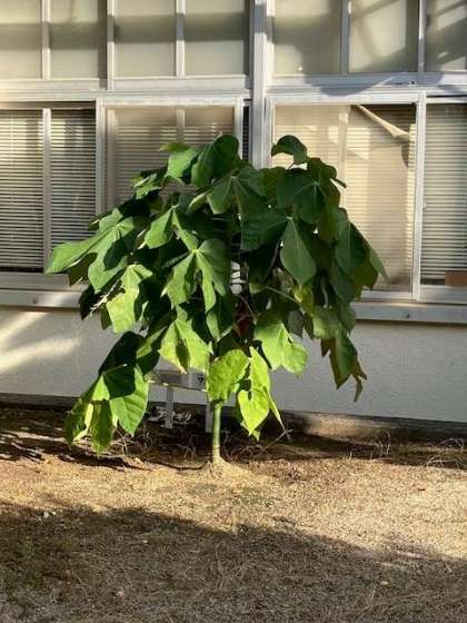 その際、本校が一昨年いただいたアオギリの苗を鉢で大切に育ててきました。