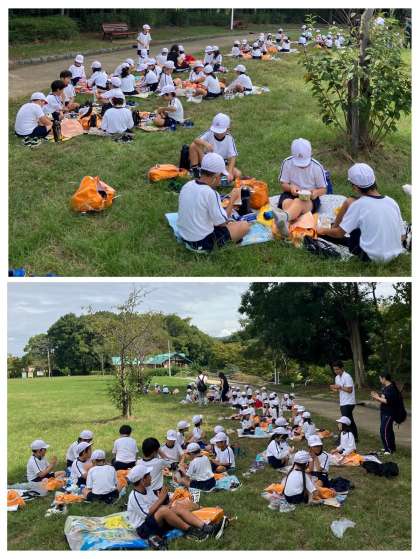 大きな広場で鬼ごっこをしたり、お弁当を食べて、どんぐりを拾ったりして過ごしました。