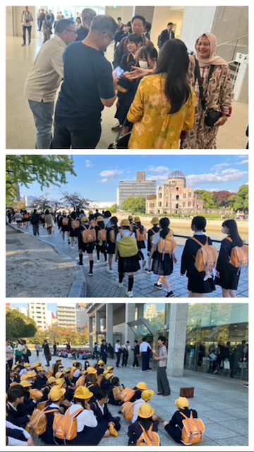 資料館の出口で先生や子どもたちがバングラデシュの方々に言葉をかけられ、短い間でしたが交流ができました。パイロットをされている家族の方とのことでした。(ご家族には掲載許可をいただいています)