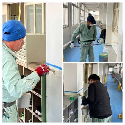 今日は2年生の教室まわりの塗装をされていました。子どもたちの活動もあるので、気を遣いながら丁寧に作業に取り組んでいただいています。