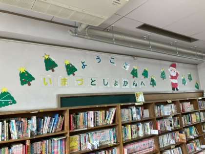 12月になりました。図書室には子どもたちの作ったツリーがたくさん飾られ、12月に関連した本が特集で開架されています。