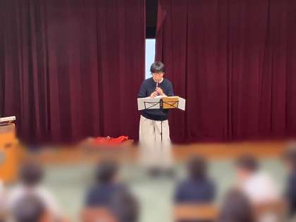 今日はなかよし学級の子どもたちが一斉に集う「なかよしタイム」の日でした。劇やものまねなど子どもたちによる楽しい出し物の後は、いつもお世話になっている先生からクリスマスの曲のプレゼント!3年生のリコーダー指導でも5月に演奏していただきました。素敵な演奏をありがとうございました♪