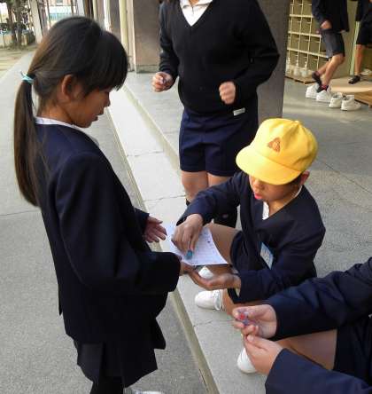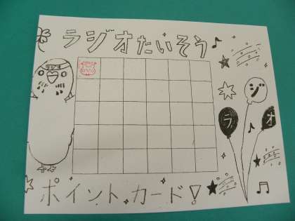 休み時間に運動委員会が行っているラジオ体操ですが、3学期からポイントカードが作成され、出席するとポイントがつきます。