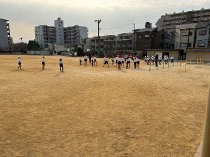 1時間目に、4年1組と5年1組がドッジボールをしました。行事の関係で両クラスが運動場で体育をしていたため、合同で交流を兼ねて、行いました。
