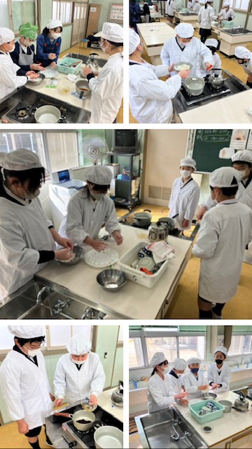 今日は2組の白玉団子作りでした。しっかりと先生の話を聞いた後は安全に注意して調理に取り組むことができました。