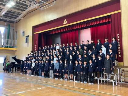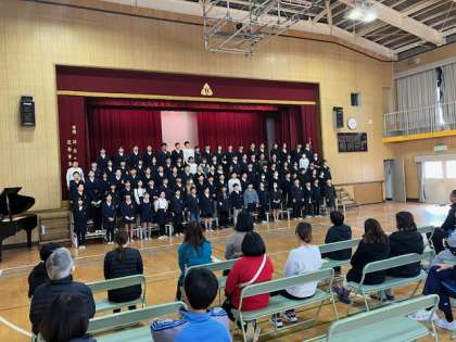 卒業が3月に控えている6年生は、みんな一緒に過ごす時間も少なくなってきました。朝は学年で一緒に体を動かし、午後からは講堂で出し物を披露して楽しみました。会の最後は「茶話会」と題し、お世話になった先生や職員の皆さんに集まっていただき歌のプレゼント。サプライズでアンコールもありましたが、そこはきっちり期待に応えた6年生でした(^ ^)