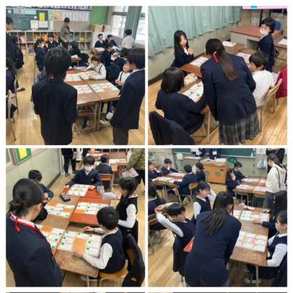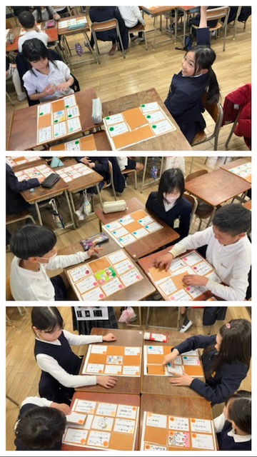3年生では今津中学校から生徒さんのお招きして、歯と口の健康教室をおこないました。生徒の皆さんが用意してくれた、かるたを使ったビンゴゲームを楽しむことを通じて、歯と口の健康について学ぶことができました。今日来てくださった生徒さんのなかには、卒業生もたくさんいて、素敵な交流にもなりました♪