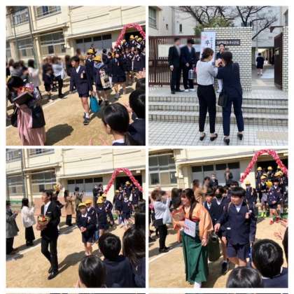 本日、本校の卒業式を無事挙行いたしました。昨日からの寒さが残る肌寒い朝でしたが、朝日が運動場から差し込み、5年生の教室から6年生に向けたメッセージを明るく照らしました。たくさんの方々に見送っていただき、表情豊かで素直な子どもたちであった6年生が今津小学校をあとにしました。