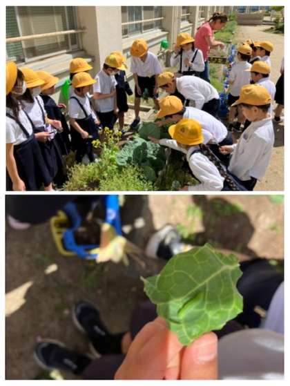 1組の子どもたちが虫メガネを持って春の生き物をさがしていました。子どもたちは植物の近くや地面には様々な生き物が暮らしていることに気づきました。