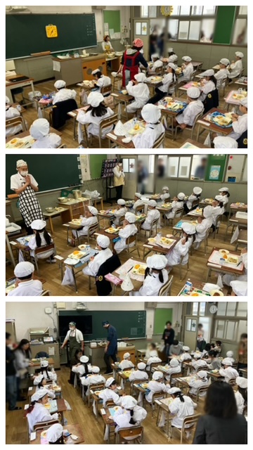 学習参観ならびに学級懇談会を実施しました。1年生では保護者やご家族の皆さんに給食の様子を見ていただきました。いつもと変わらず落ち着いて食べることができました。当日は献立の関係でたくさんの方にお手伝いいただきました。ありがとうございました。