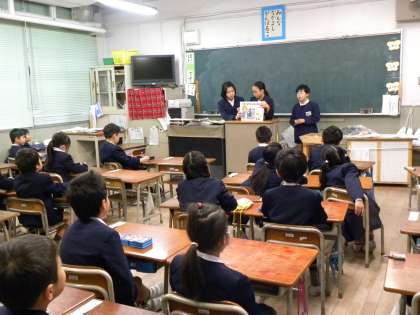 今日は、図書委員会のみんなが低学年の学級へ行って紙芝居をしてくれました。