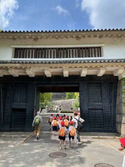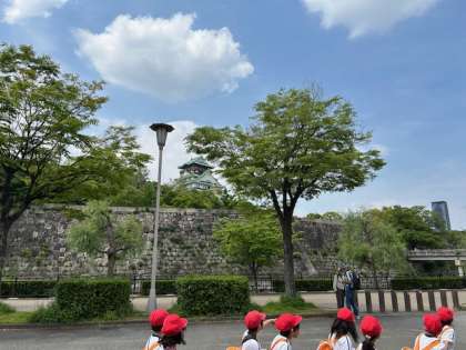 大阪城も近くに見えて、子どもたちも興味津々です。