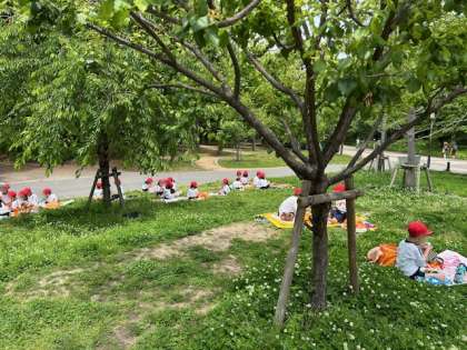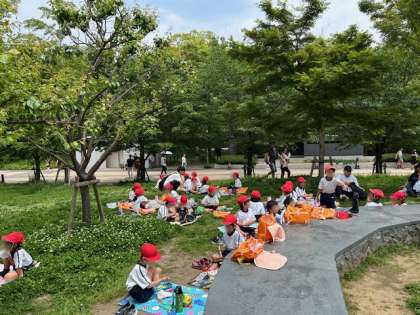 子どもたちはお腹が空いたようで、嬉しそうに友だちとお弁当を食べていました!