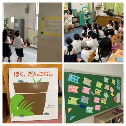 今日は新しい司書さんが来られての初めての読み聞かせの日。たくさんの子どもたちが15分の休み時間に集まりましたよ(^-^)/