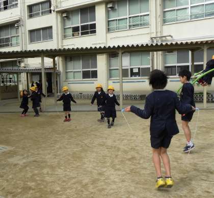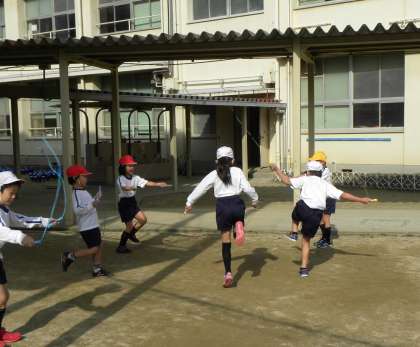 なわとびチャレンジ大会に向けて、縄跳びの練習をしています。