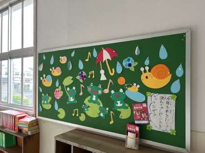本校の学校図書館(図書室)の掲示板やピックアップ本が6月をイメージしたものに変わりました。