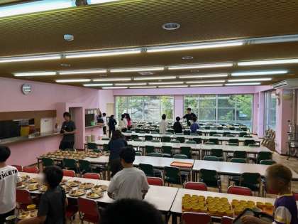 食事係さんが先に食堂へ来て、みんなの食事を配膳しました。