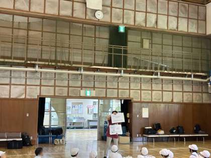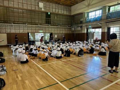 日差しが強いということで、施設の方が体育館で説明しますと言ってくださいました。