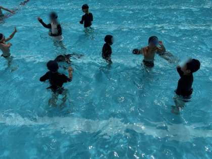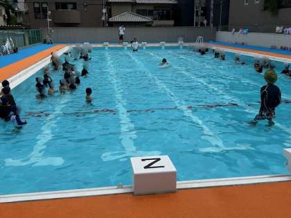 月曜日に雨や雷のため、入れなかった分、1年生は楽しそうに水慣れをしていました!