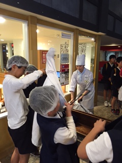 ベーカリーショップでは身支度をしています。